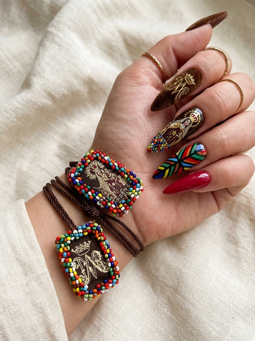 Aretes de cerdito con cuentas de chaquira hechos a mano.