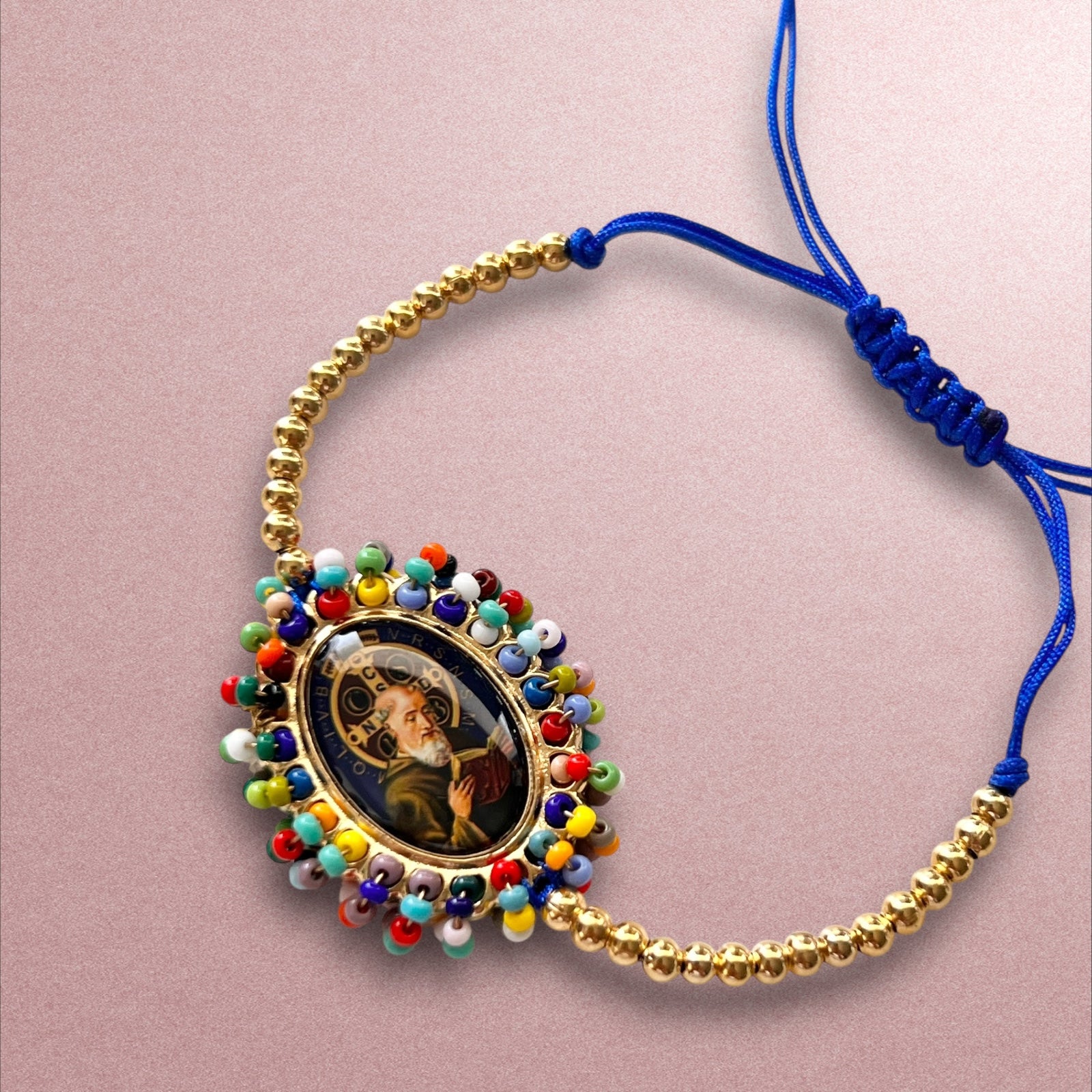 Pulsera de hilo San Benito / Chapa de Oro 14k