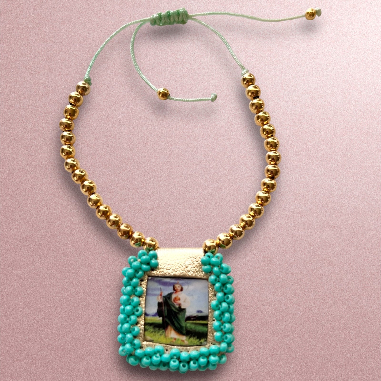 Pulsera de hilo San Judas / Chapa de Oro 14k