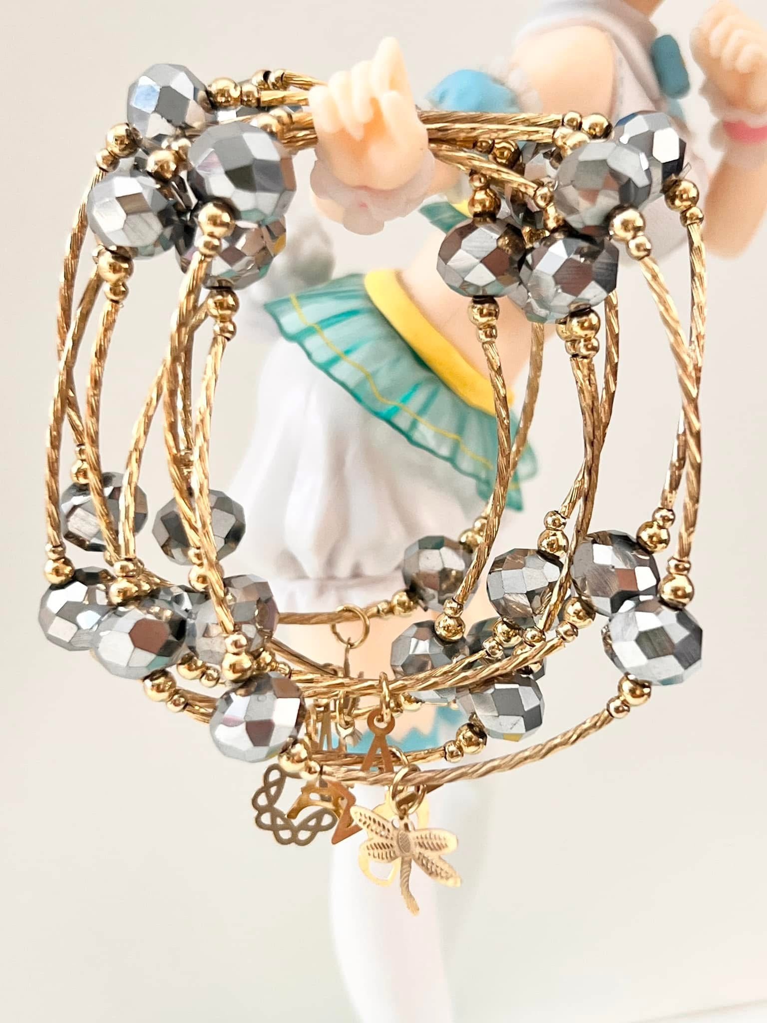 Conjunto de 7 pulseras DE CRISTAL elásticas, medida normal para mujer.